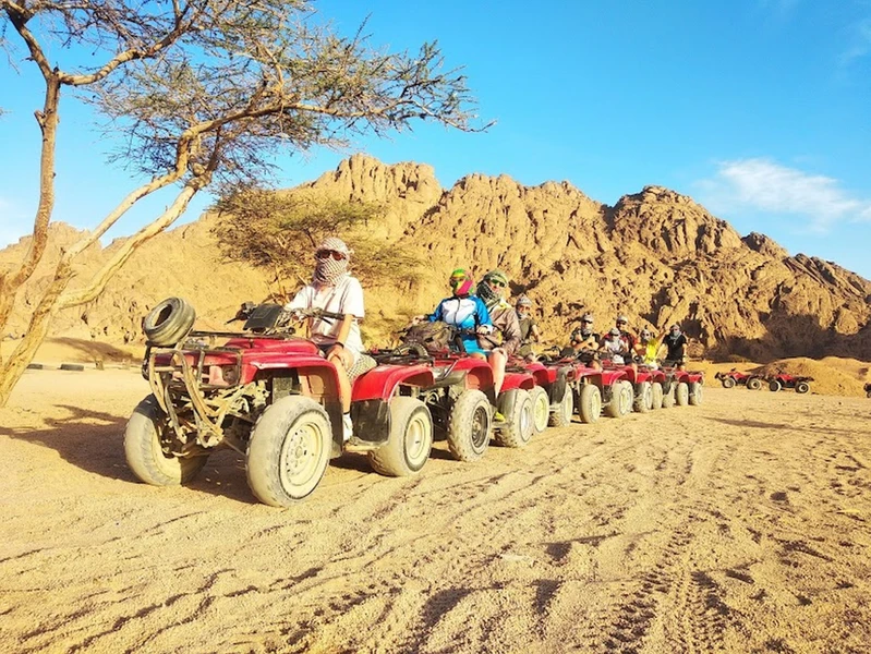 Мы заберём вас из отеля и отвезём на базу квадроциклов, откуда вместе с инструктором вы стартуете в пустыню