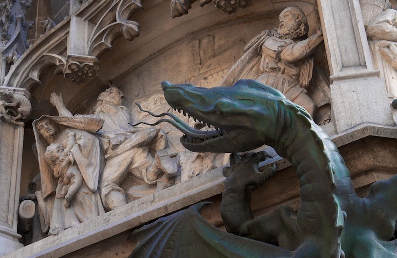 Почему на самой высокой башне на Мариенплатц стоит ребёнок в монашеской рясе