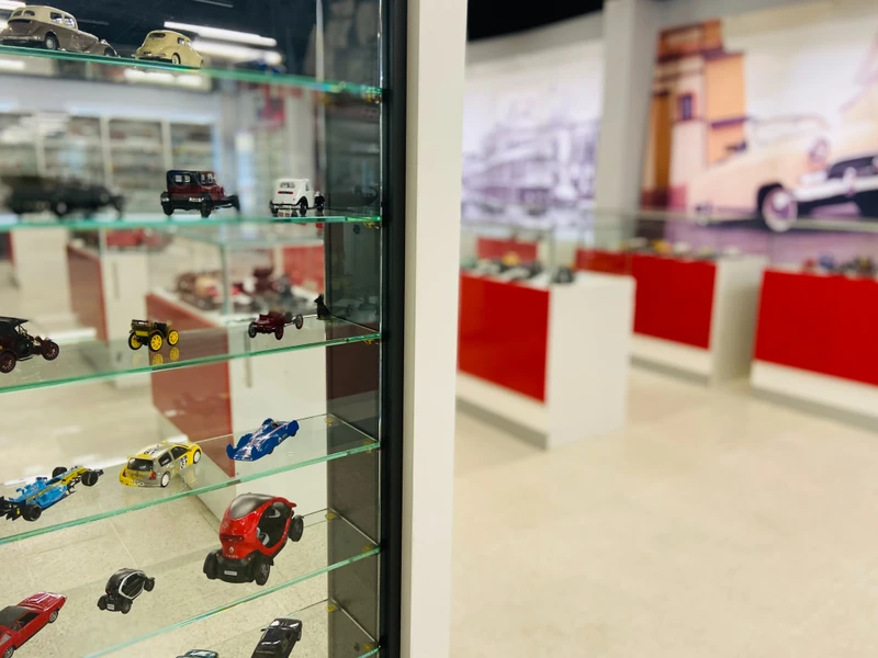 Вы рассмотрите экспозицию транспорта: небольшие модельки машин, тракторов, автобусов, сделанные тверскими умельцами