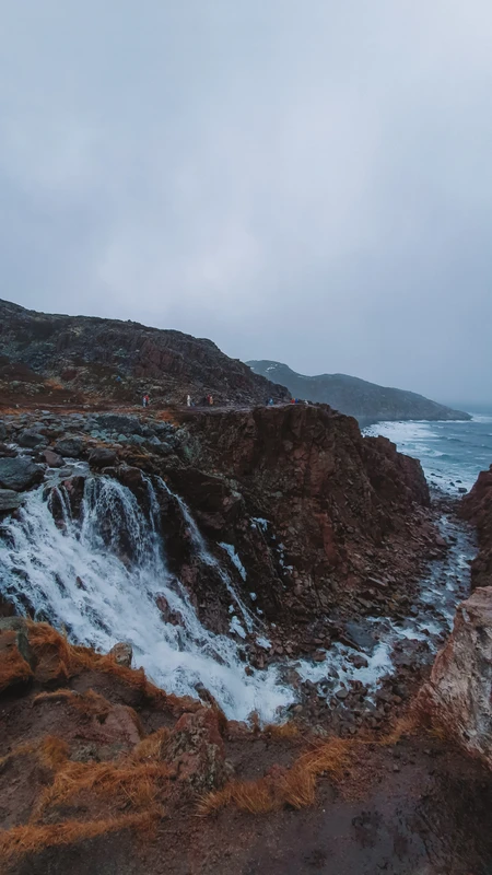 Полюбуетесь водопадом, срывающимся с сопки и впадающим в волны Баренцева моря
