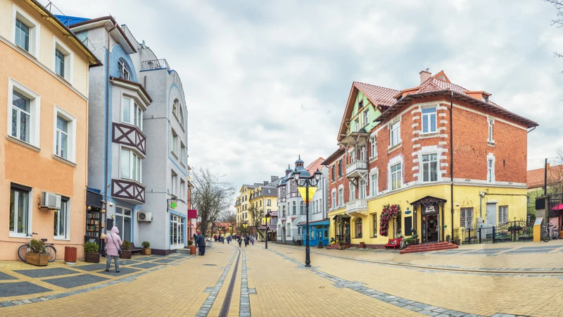 Центральная улица Зеленоградска с уютными кафе и сувенирными лавочками