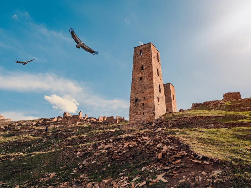 Первым делом я отвезу вас к руинам крепостного города, бывшей столице средневекового феодального государства на территории нынешнего Дагестана. Она расположена на возвышенности...