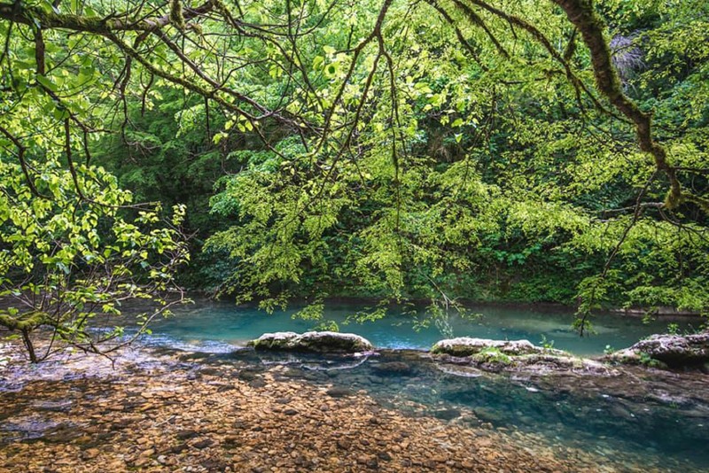 Голубое озеро — вода здесь настолько яркая, что кажется нереальной