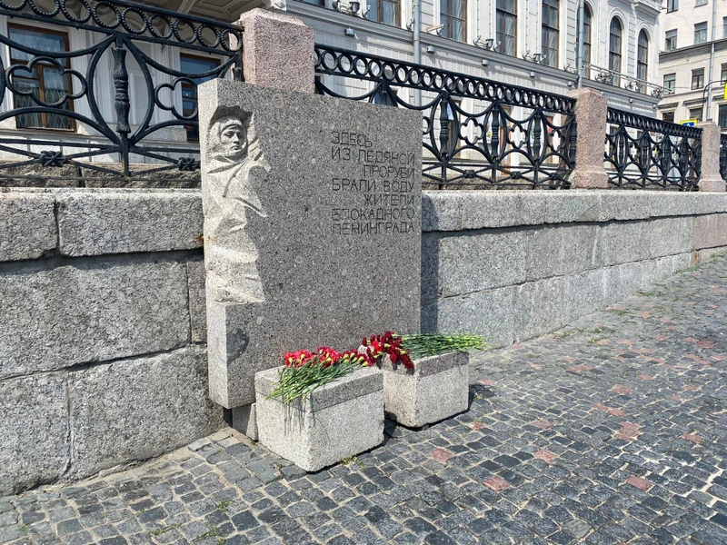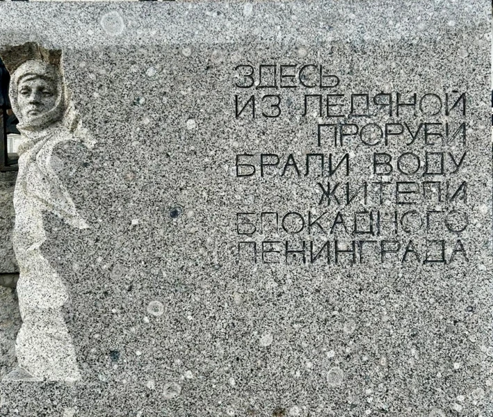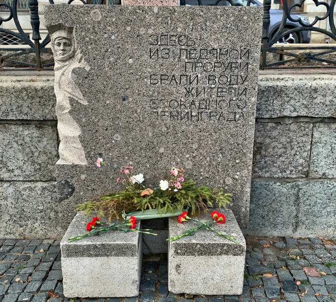 Остановимся у мемориала «Блокадная прорубь» на набережной Фонтанки, где слабые и голодные ленинградцы часами стояли...