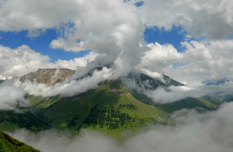 Наш путь пройдёт через завораживающий перевал Гумбаши высотой до 2144 м. Отсюда открываются панорамы Большого Кавказского хребта.