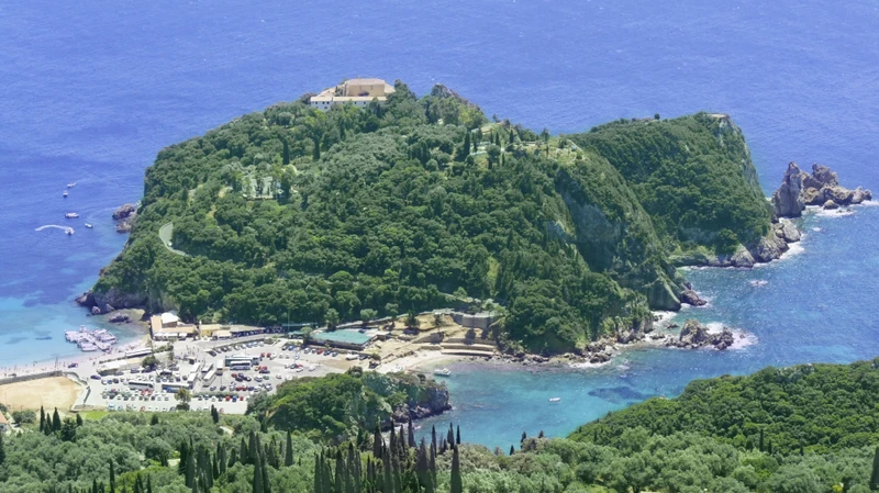 Канони — смотровая площадка с видом на монастырь Влахерна и Мышиный остров, визитная карточка Корфу