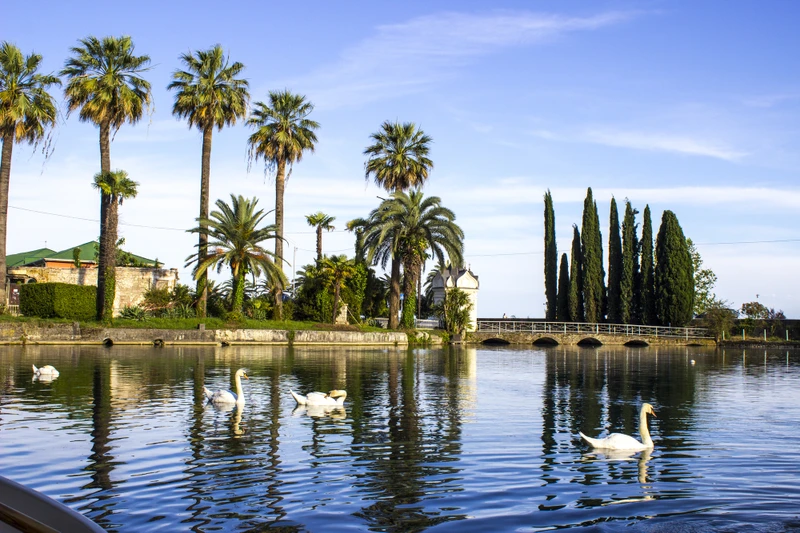 Полюбуетесь парком с лебединым озером и рукотворным водопадом со станцией Псырцха