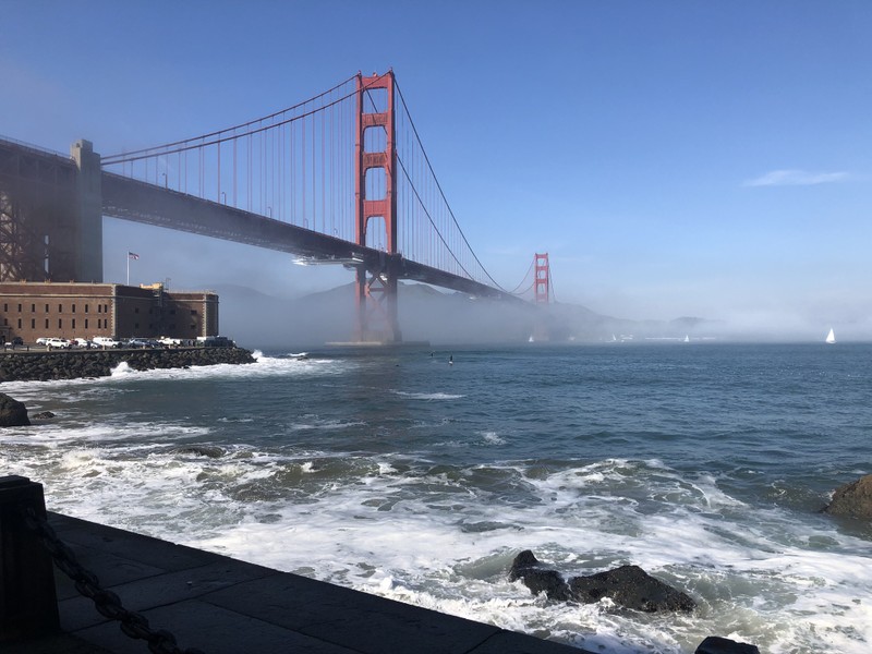 Проедем через мост «Золотые ворота» и остановимся на смотровой площадке — отсюда открывается завораживающий вид на залив